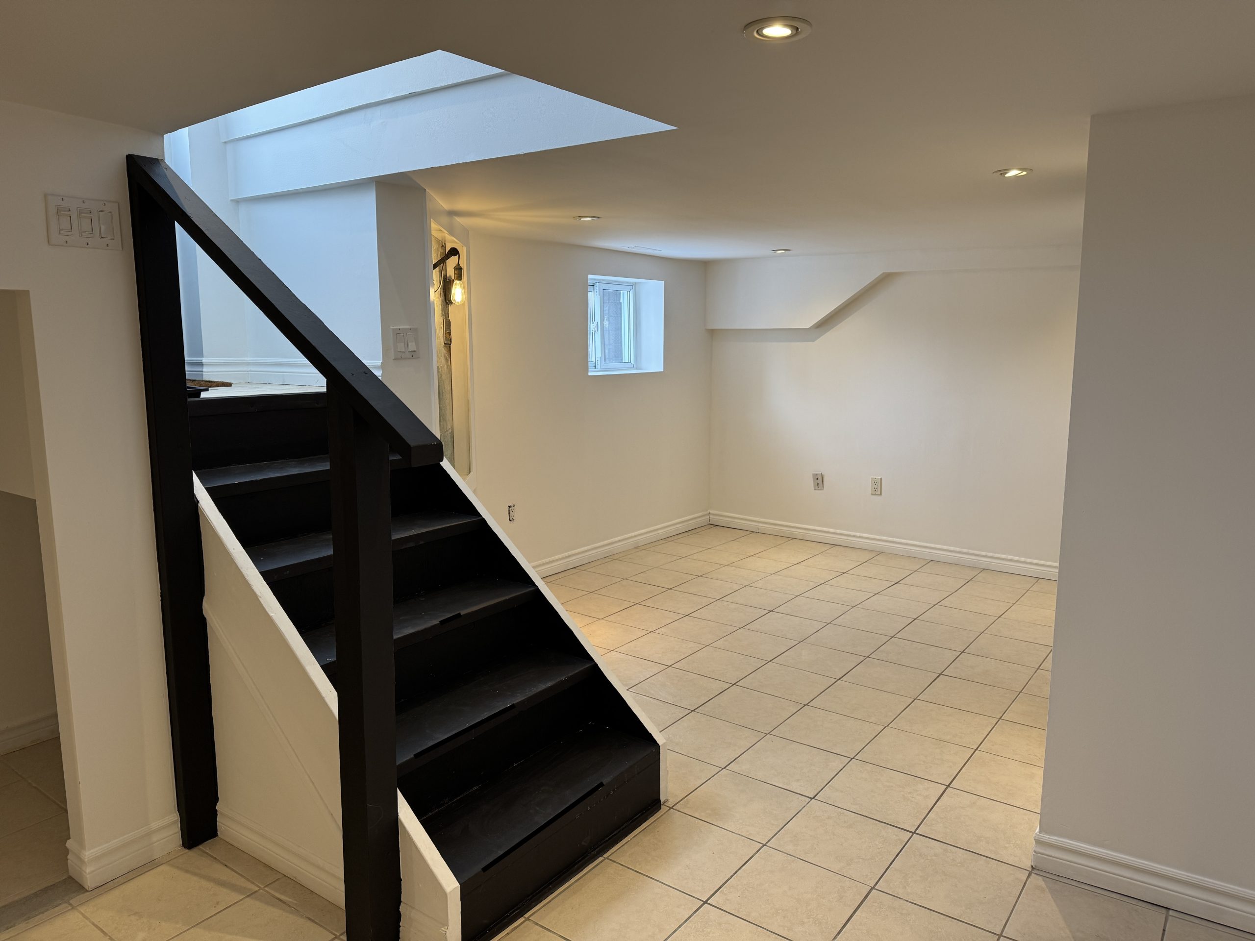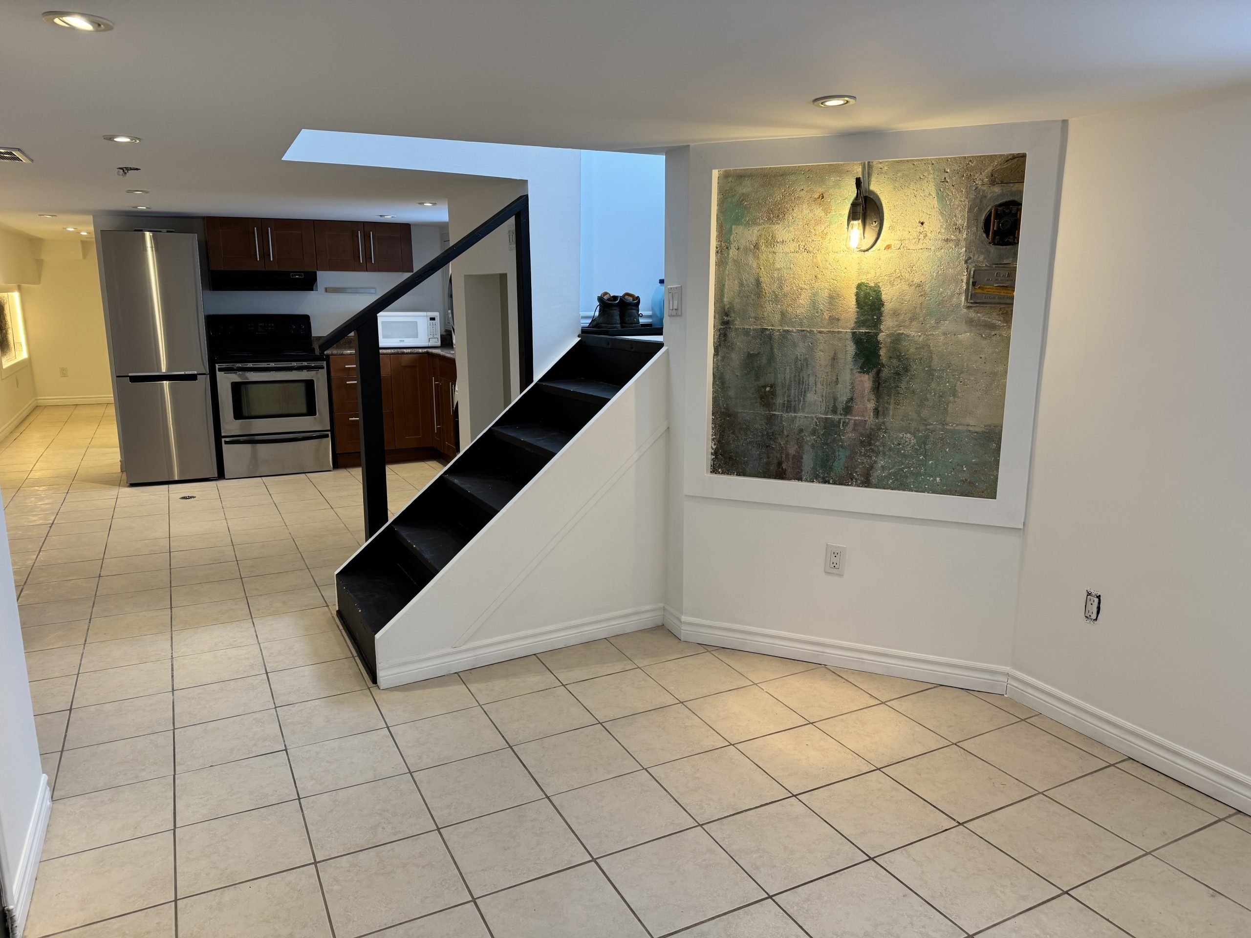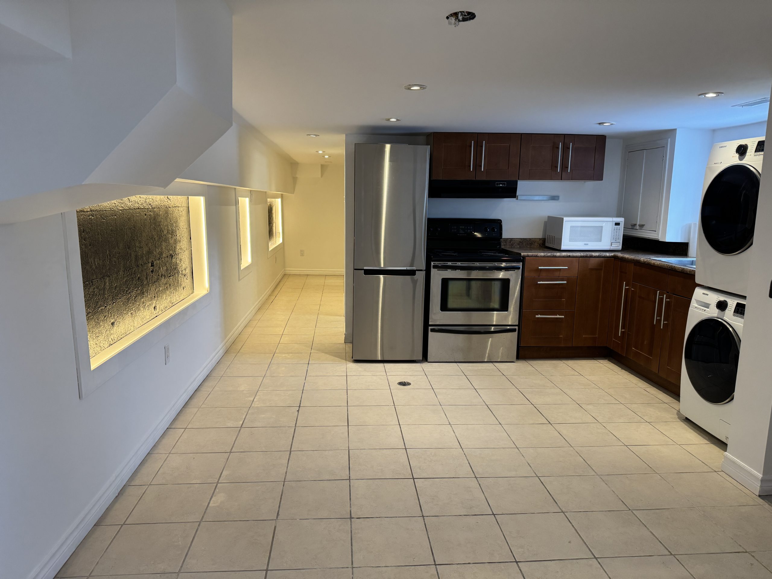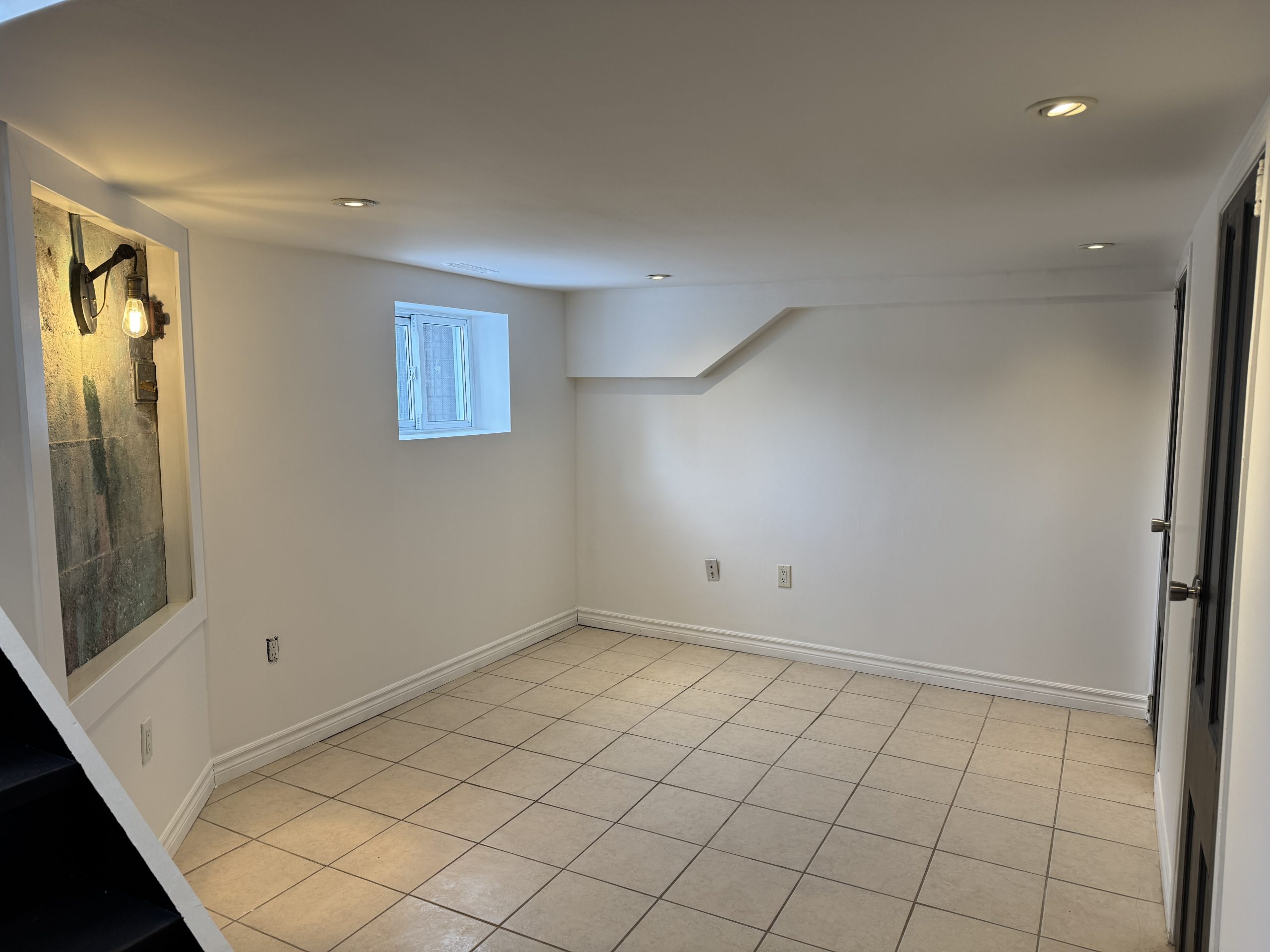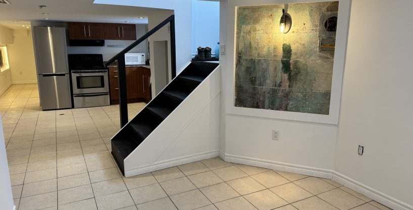 Located at 2A Tiverton Avenue (Dundas/Logan) this partially above ground Jr 1 bedroom basement apartment has a unique open concept layout and is approximately 600 sq ft with a ceiling height of 6’5″. Complete with stainless steel appliances in a beautiful kitchen with ample cabinet storage,  gorgeous modern tiled bathroom, spacious living area with central air; this chic and stylish suite is everything you desire!